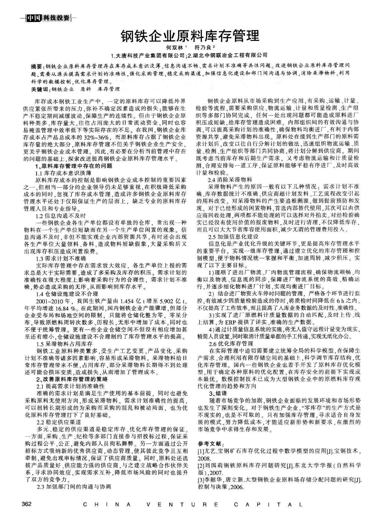鋼鐵企業(yè)原料庫(kù)存管理
