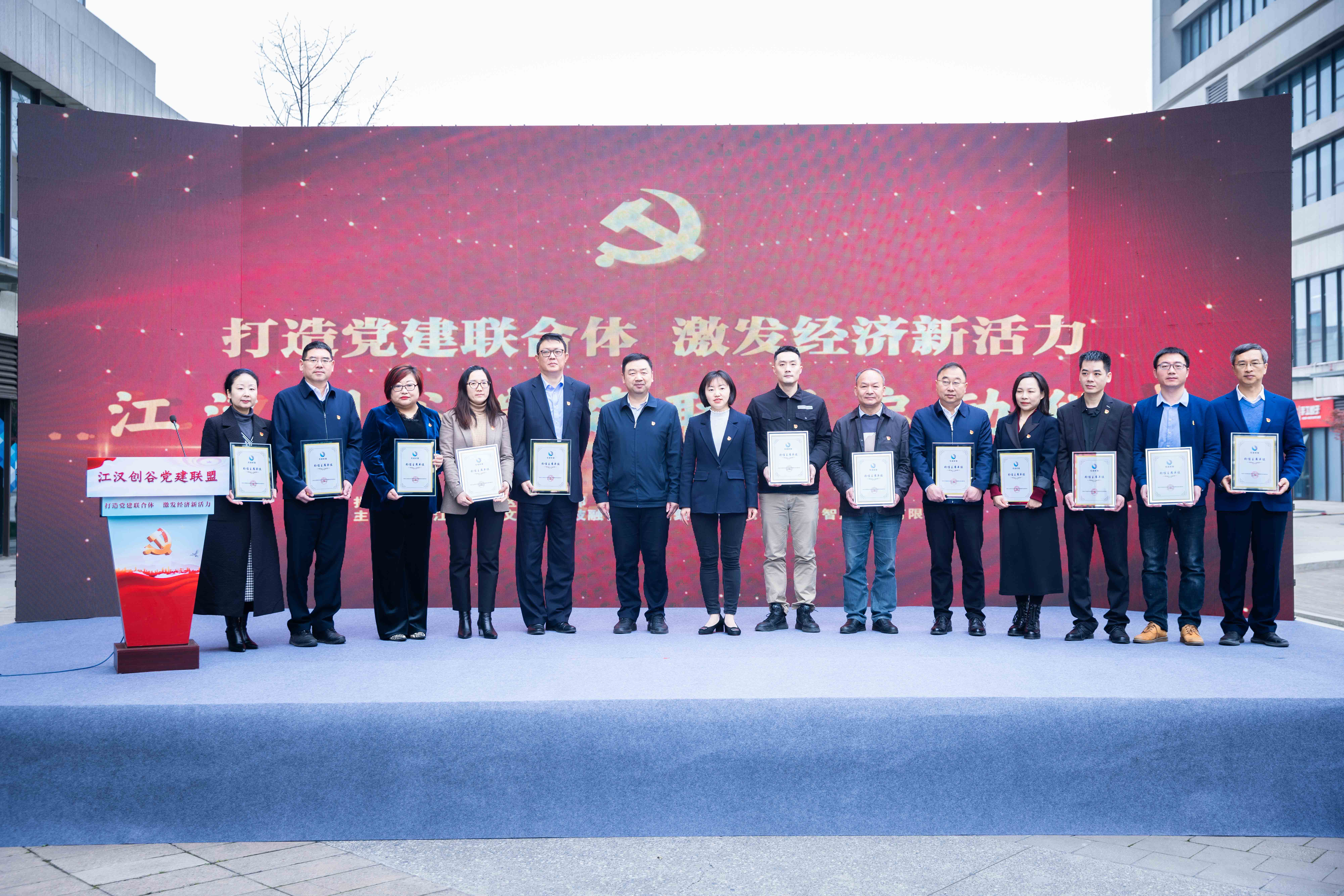 深入貫徹落實(shí)新時(shí)代黨的建設(shè)總要求和黨的組織路線,切實(shí)夯實(shí) 基層黨建基礎(chǔ),解決企業(yè)困難,優(yōu)化營(yíng)商環(huán)境,促進(jìn)經(jīng)濟(jì)發(fā)展,江漢經(jīng)濟(jì)開發(fā)區(qū)工委決定成立黨建聯(lián)盟,于 2023 年 3 月 29 日上午舉辦“江漢經(jīng)濟(jì)開發(fā)區(qū)黨建聯(lián)盟啟動(dòng)儀式”活動(dòng),湖北中鋼聯(lián)冶金工程有限公司黨支部代表金巍同志參加了本次活動(dòng),并當(dāng)選 12 家黨建聯(lián)盟輪值主席之一,江漢區(qū)委組織部胡金利部長(zhǎng)、開發(fā)區(qū)工委楊棟書記給 12 家黨建聯(lián)盟輪值主席頒發(fā)了證書并合照。