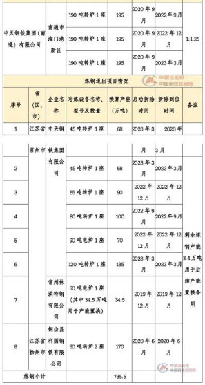 2019年12月10日,江蘇省工業和信息化廳發布《中天鋼鐵集團(南通)有限公司產能置換方案的公示》(以下簡稱“《公示》”)。